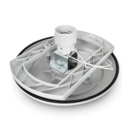 Base blanca de policarbonato con portalámparas E27 para farola bola, sin equipo eléctrico con forma semiesférica para un perfecto acoplamiento con el difusor.
