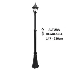 Precio 89,00 €Farola exterior jardín regulable columna negra Becru3 Elegante farola de exterior para iluminar tu jardín. Altura ajustable de 168 a 224cm