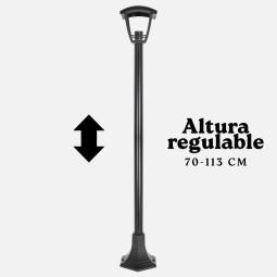 > Altura Adaptable: Su sistema extensible permite regular la altura entre 70 y 113 cm, ofreciendo una versatilidad única en el mercado para iluminar senderos, entradas o parterres.